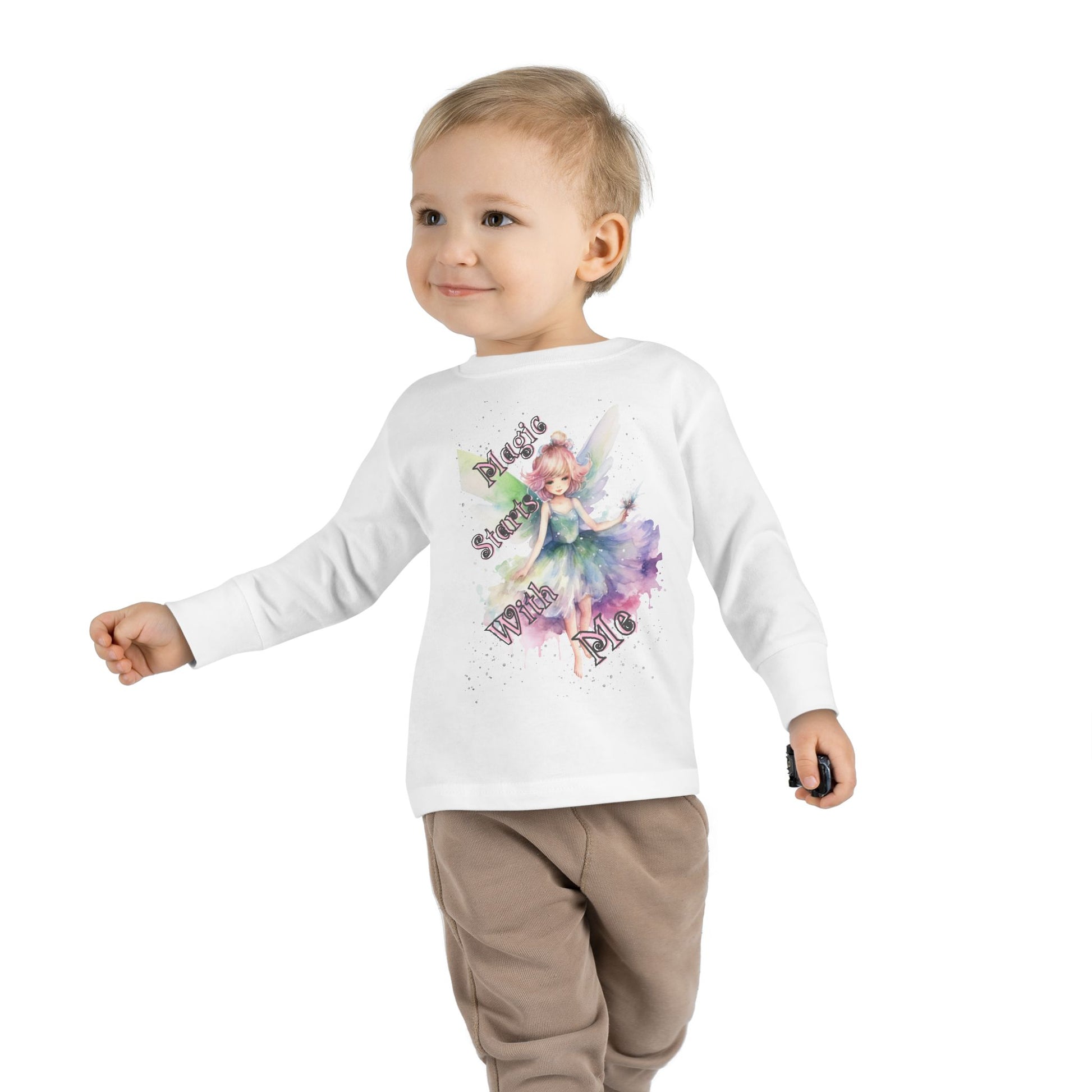 Introduce your little ones to a world of comfort and whimsical style with this charming Toddler Long Sleeve Tee. The delicate design, featuring enchanting graphics, creates a playful and magical atmosphere that children will love. Perfect for keeping your toddler cozy during chilly weather, this tee is ideal for playdates, family outings, or just lounging at home. Its unisex fit makes it a great choice for any little adventurer. This tee would make a delightful gift for birthdays, holidays, or special occasions. Moms and dads, as well as grandparents, will appreciate adding this stylish staple to their toddler's wardrobe, giving them both comfort and cuteness all day long!